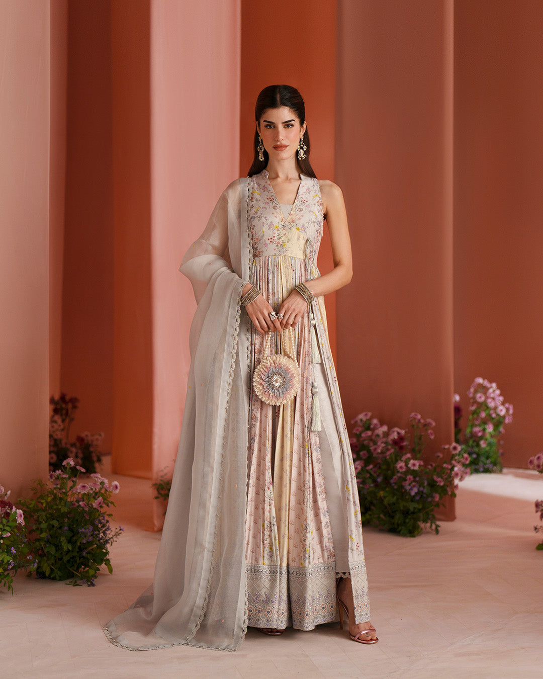 AngrakhaPrinted AngrakhaEmbroidered Neckline With Tassel DetailingEmbroidered Front BorderPrinted Sleeves With Embroidered Armhole & BorderGotta Ball...