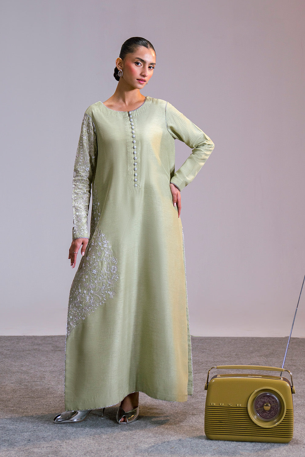 ShirtEmbroidered Straight-Cut ShirtEmbroidered Neck With Pearls DetailingEmbroidered Front BorderStraight Sleeves With Embroidered BorderPearl Drop Detailing...