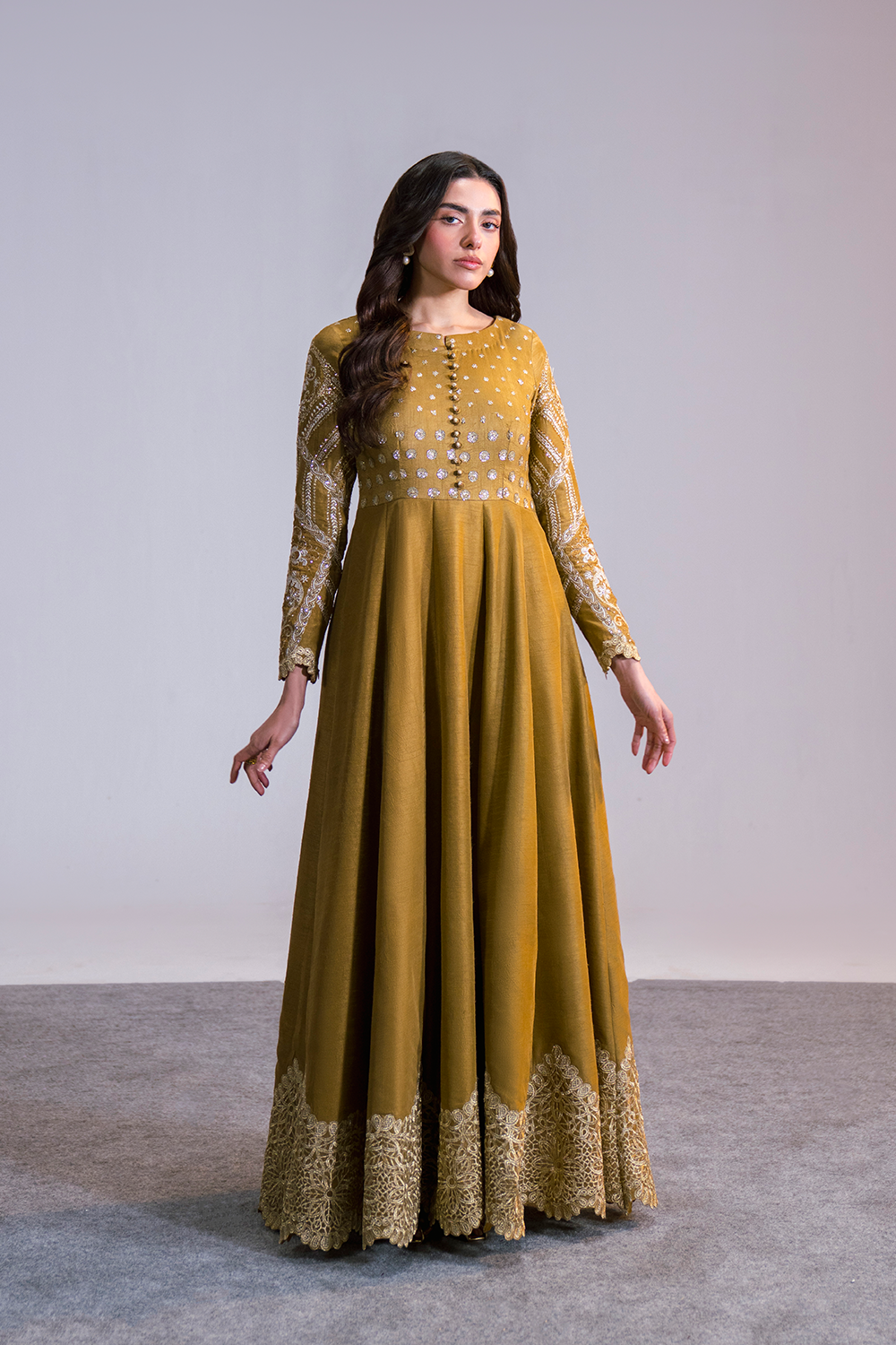 Step into opulent sophistication with this Golden Brown 2-Piece Pret, crafted in refined grip fabric...