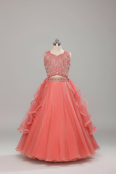 Kid's Olive Green Lehenga Dress with Multicolor Top