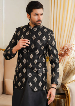 black and golden heavy stitch fabric, gives an elegant and outstanding formal look perfect for the occasion.