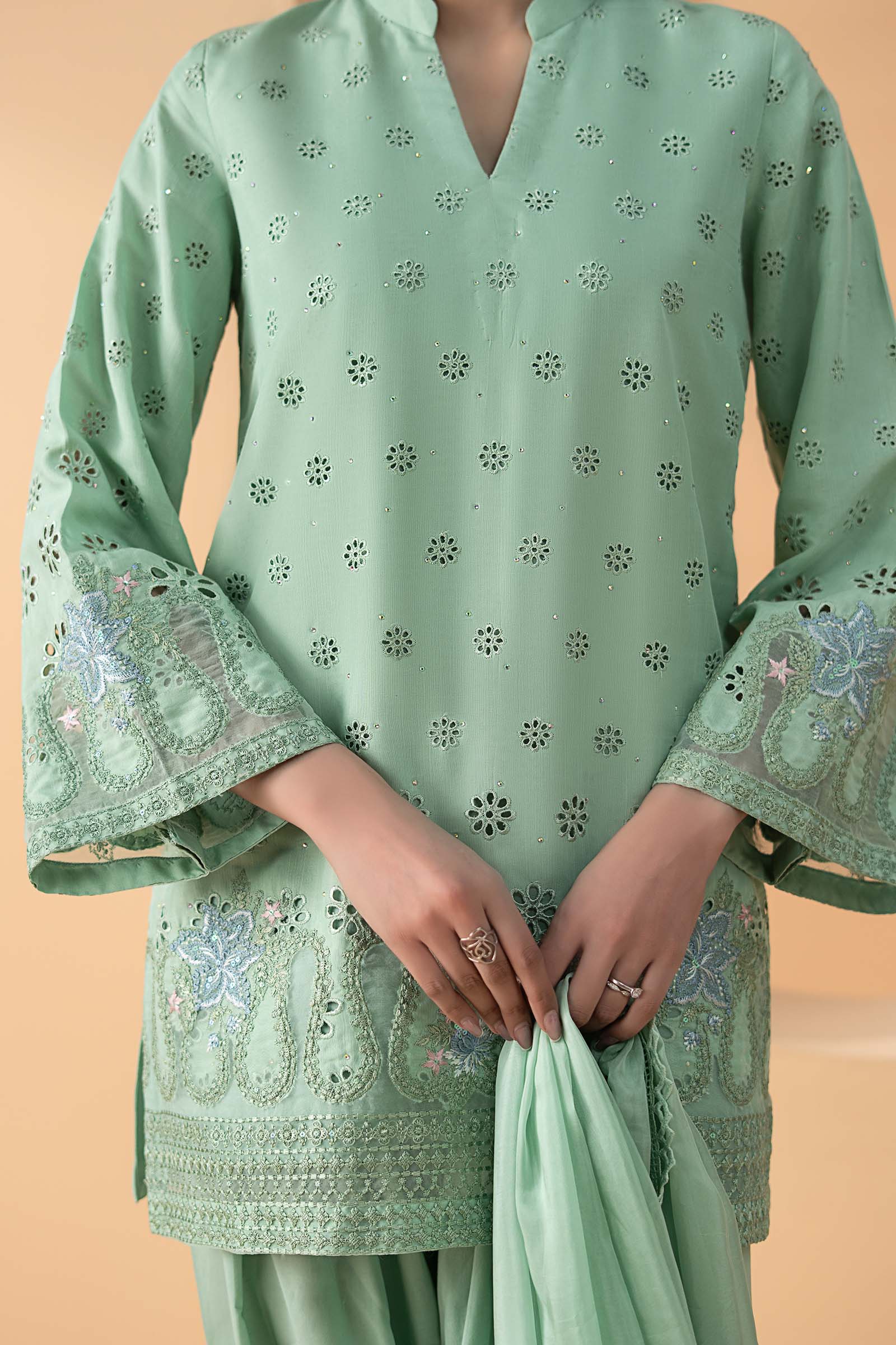 Schiffli Embroidered Shirt With Diamantes Embellishment