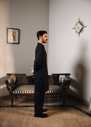 A Classic Straight, collared kameez paired with the traditional shalwar. This is a 2 Piece outfit.