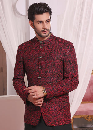 Men Formal Prince Coat with Banarsi Base and Computer Embroidery